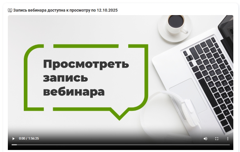 Видеозапись доступна на странице конкретного вебинара. Для этого перейдите на страницу вебинара с блока «Видеозаписи». Плеер для просмотра записи вебинара находится ниже программы вебинара. Для удобства также приводится информация о сроке доступности записи к просмотру.