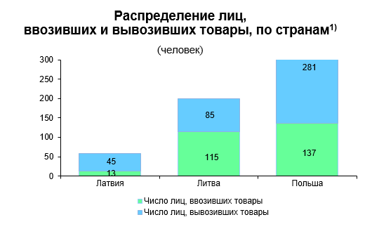 Ввоз товаров осуществлялся преимущественно из Польши (57% от общей стоимости товаров, ввезенных в Республику Беларусь во время проведения обследования) и Литвы (40,5%).