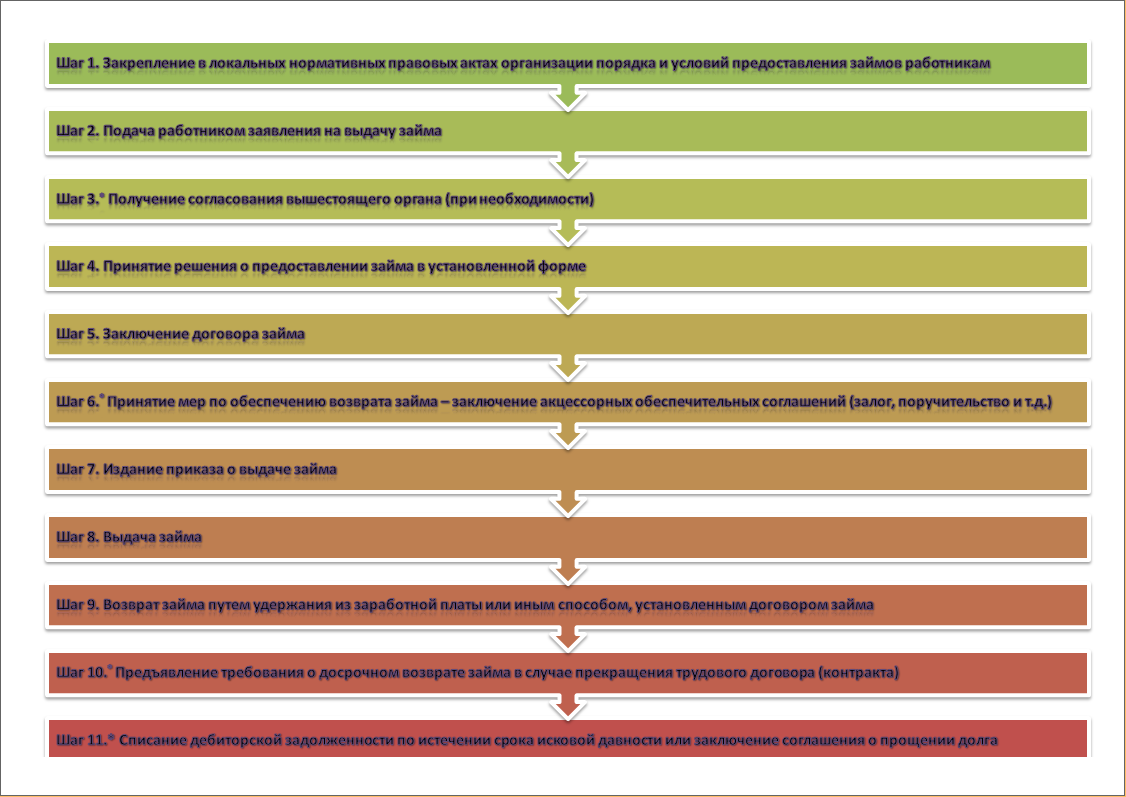 Схема 1. Общий алгоритм юридических действий по предоставлению денежных займов работникам